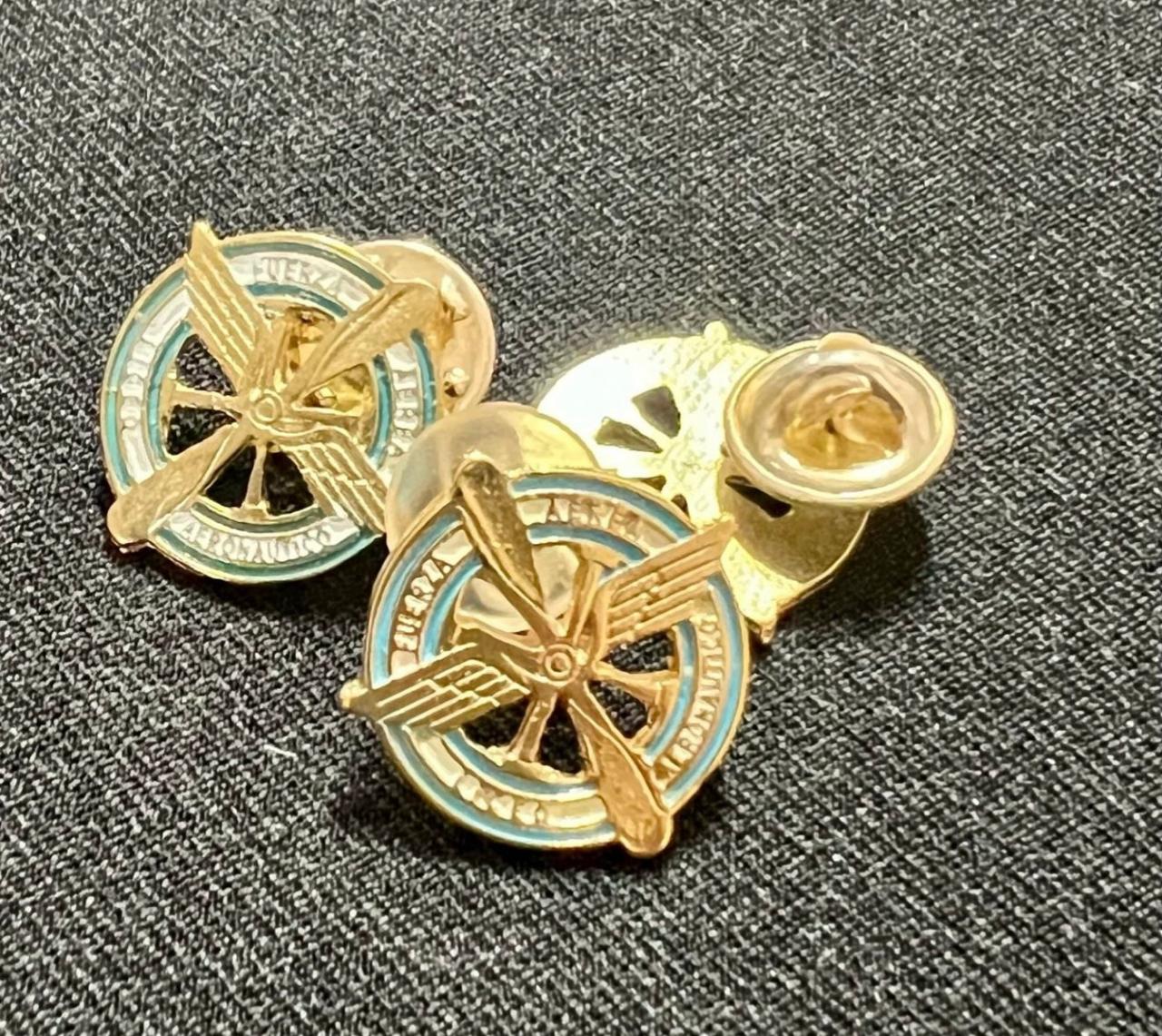 El brevet del Liceo Aeronáutico Militar es una pieza única, elaborada en metal pintado a mano, que trasciende lo ornamental para convertirse en un verdadero símbolo de historia y orgullo.